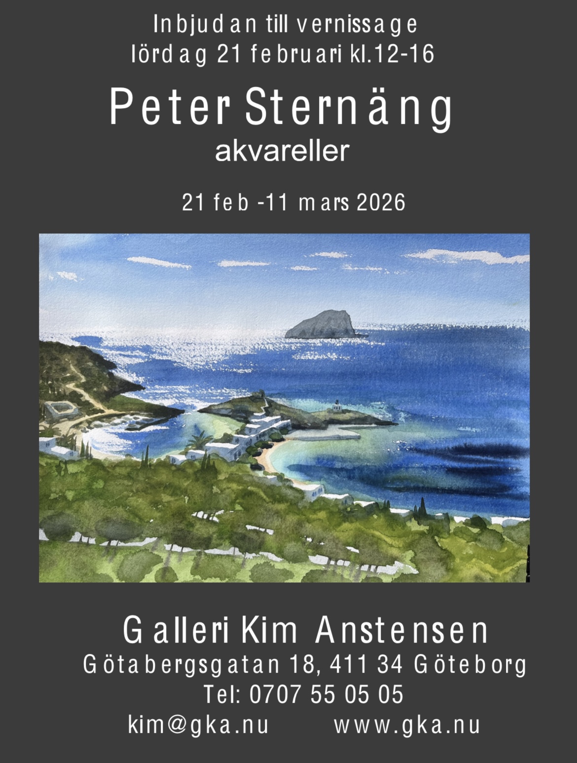 Detta var den sista målningen jag gjorde i Grekland i höstas, innan jag flera veckor före planerat reste hem hals över huvud. Jag målade den uppe i en liten bergsby på Peloponnesos som heter Pigí (källan). Nedanför låg Kalamatabukten och vid horisonten tornade ovädren upp sig. Alla talade ständigt om problemen med ekonomin, och det kändes som att stå och måla vid sidan om en soppkö.